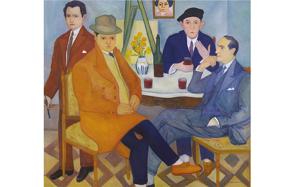 Luego del viaje de estudios a Florencia llevado a cabo entre 1914 y 1918, Schiavoni definió paulatinamente su lenguaje a través de la pintura de retratos, naturalezas muertas y paisajes en los que la ausencia de volumen, la utilización de la línea para definir los planos y la alteración del color local le permitieron lograr síntesis formal y cromática en sus composiciones. Fruto de la observación de la pintura de los primitivos italianos y la influencia de la producción intelectual y artística florentina contemporánea, delineó un programa estético personal y nuevo sostenido en el valor de la bidimensionalidad, la relación figura-fondo no ilusionista y la actitud en tensión de sus retratados.