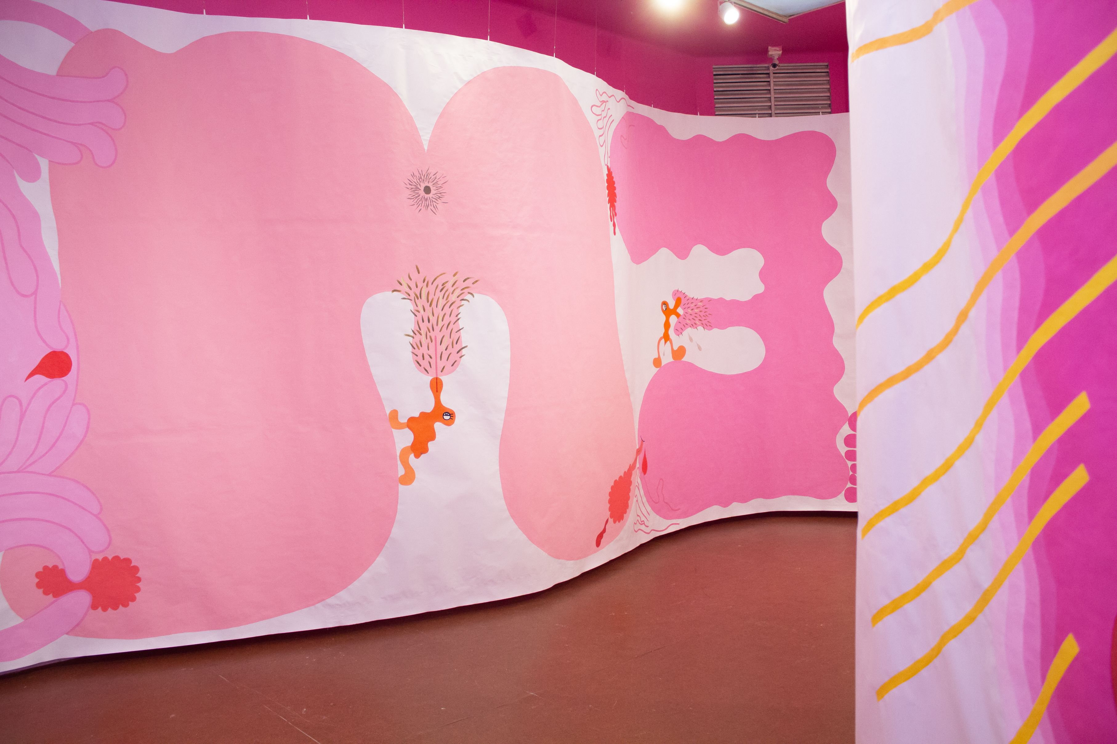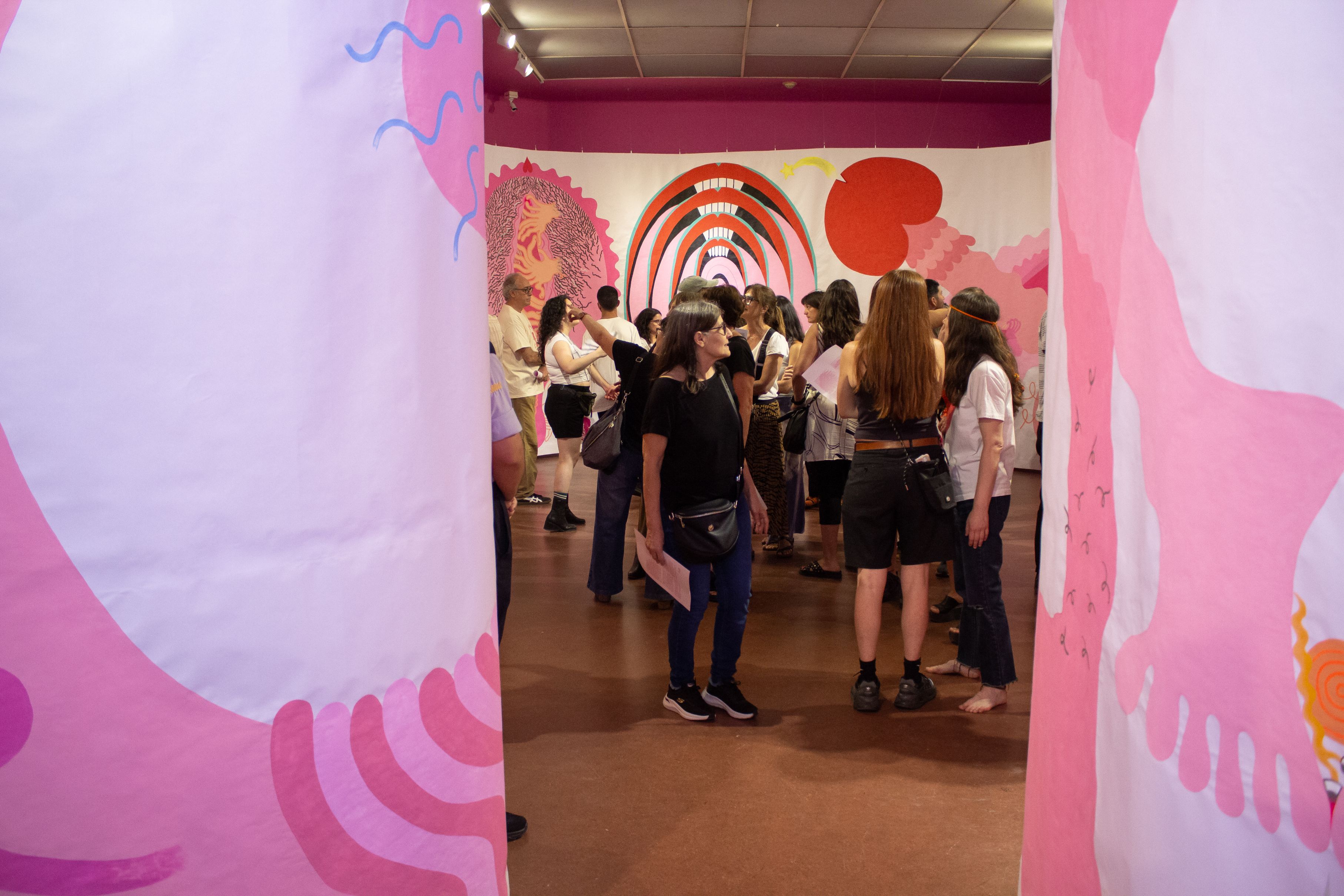 Las hermanas Lenardón proponen un recorrido experimental por una obra inmersiva: un pergamino desmesurado de 60 metros de largo y tres metros de alto inspirado en la visualidad lisérgica de los años 60 y 70. Cierra el 5 de abril.