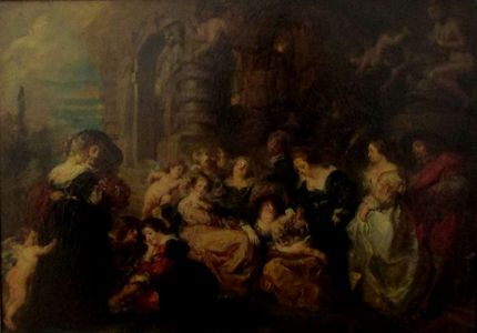 La pintura El Jardin del Amor no ha sido fechada, pero es posible arriesgar que se trata de una de las numerosas copias realizadas por Domingo en el Museo del Prado, al que concurrió con perseverancia a estudiar a los viejos maestros y en especial a Francisco de Goya mientras asistía a la Real Academia de San Fernando entre 1864 y 1868. Se trata de una copia de El Jardín del Amor de Pedro Pablo Rubens, óleo de grandes dimensiones que refleja el ambiente social galante, anticipándose a la moda del siglo XVIII. Este tipo de composiciones con figuras de pequeño formato serán frecuentes en la obra de Francisco Domingo, en las que se concentra en la descripción de los detalles con atención minuciosa.