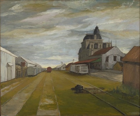 Esta obra es una vista en perspectiva de la Estación Rosario Central Córdoba, que desde 1926 ostenta la cúpula que la caracteriza. La artista define la escena con un dibujo preciso y utiliza una paleta de verdes y rojos complementarios y grises de color para crear un paisaje poético, en el que el contraste entre la parálisis del entorno -la soledad extrema donde parece haber ubicado su caballete- y el cielo tormentoso enfatiza su carácter. El lenguaje de la pintura puede relacionarse con alguna línea de producción contemporánea local -especialmente con la pintura de Tito Benvenuto- pero su agudeza expresiva y la atmósfera de melancolía que logra construir la destacan entre los paisajistas de su generación.