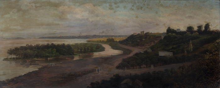 15. Salvador Zaino (Pópoli, Italia1858- Rosario, 1942), Vista del Parque Belgrano, 1890, Óleo sobre cartón, 19 x 23 cm, Donación Aldo Lázzari, 1980, R. 1820. Barrancas frente al río 1890, Firma en ángulo inferior derecho, Óleo sobre cartón- 19 x 23 cm, Ingresó al museo en 1980. Donación Aldo Lázzari, 1980, R. 1819.
